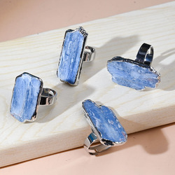 Natuursteen Ruwe Onregelmatige Kyaniet Ring Verzilverd Crystal Sugar Druzy Ring Messing Verstelbare Crystal Sierlijke Ring Voor Vrouwen